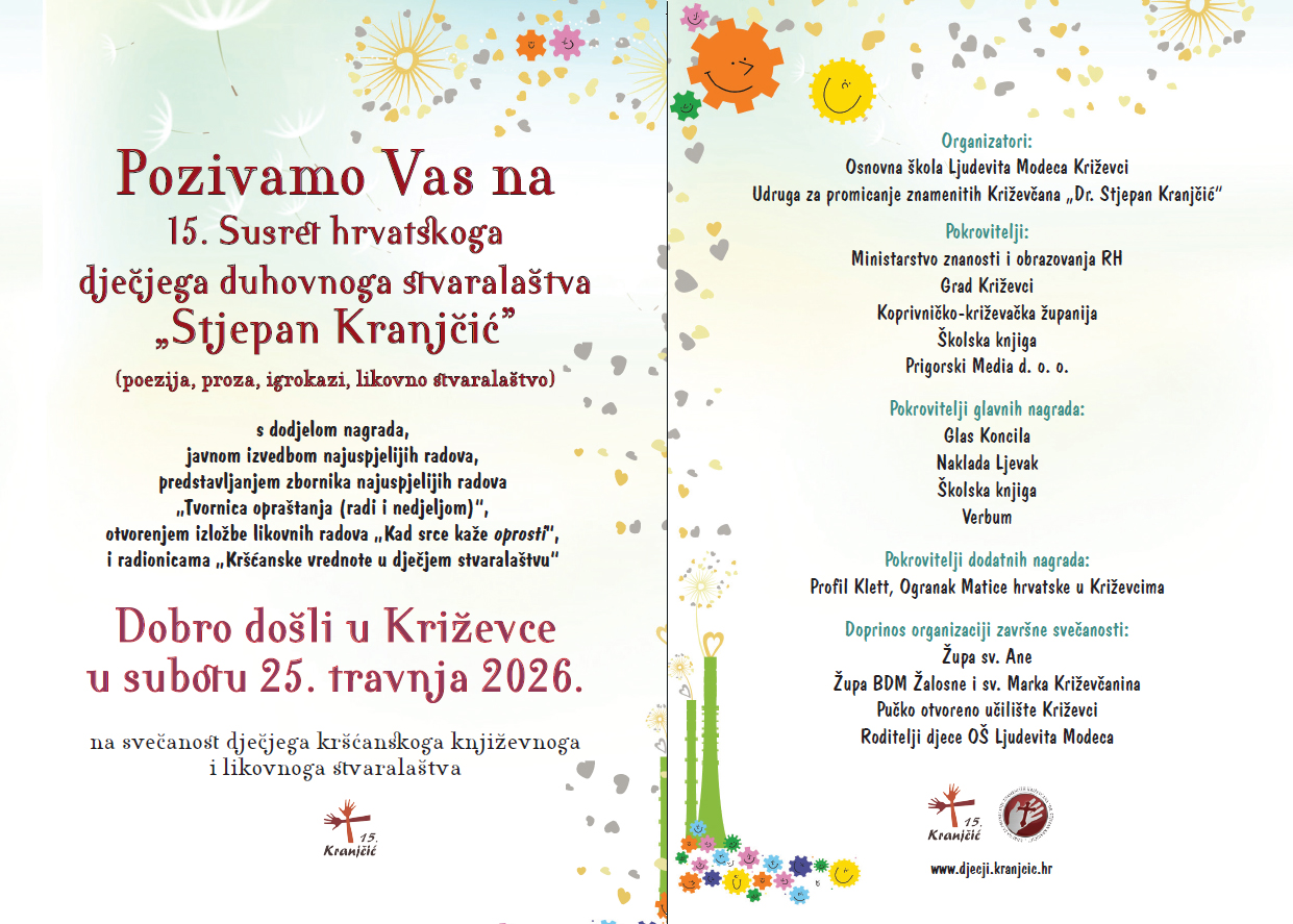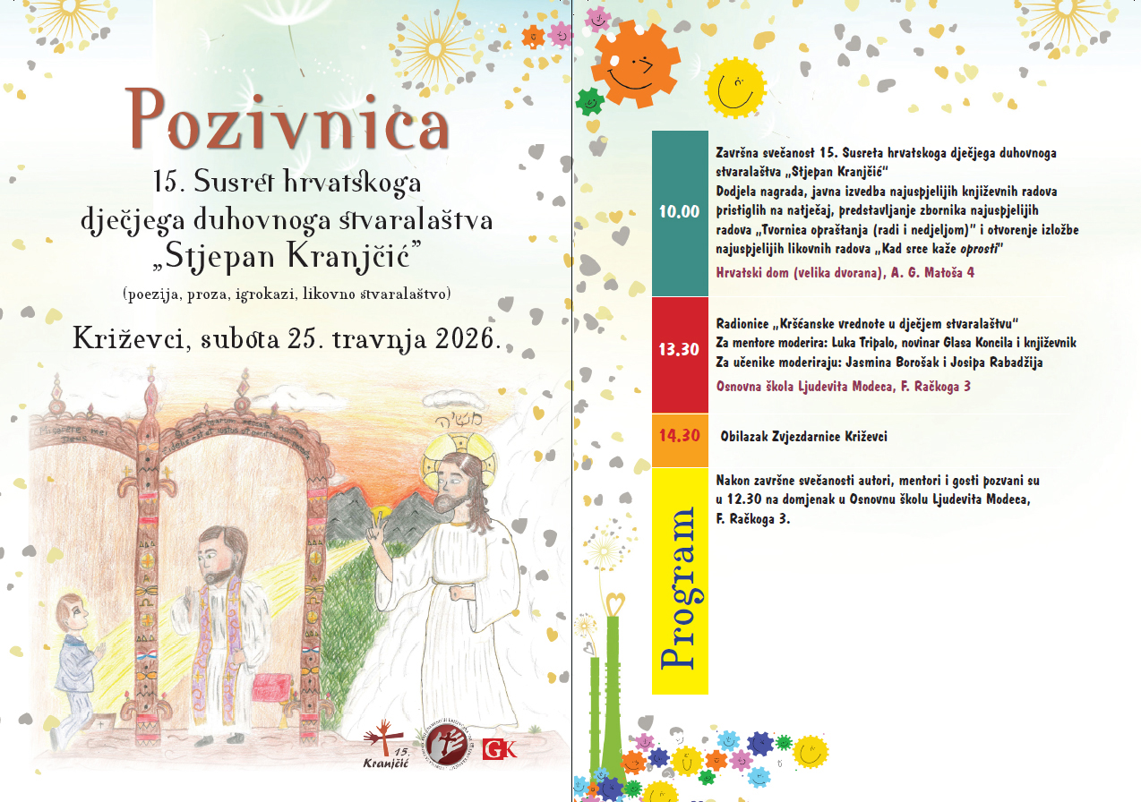 U Križevcima će u subotu 25. travnja 2026. biti održan Susret hrvatskoga dječjega duhovnoga stvaralaštva „Stjepan Kranjčić”.